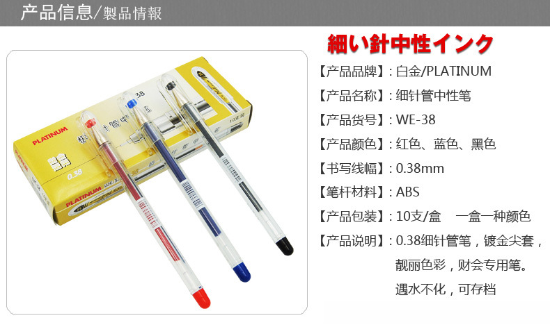 白金 WE-38 極細(xì)針管中性筆 0.38mm 黑色 10支/盒