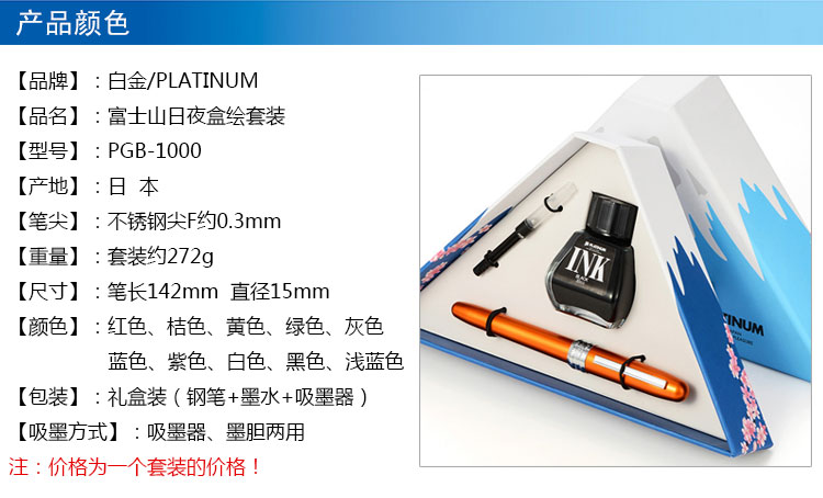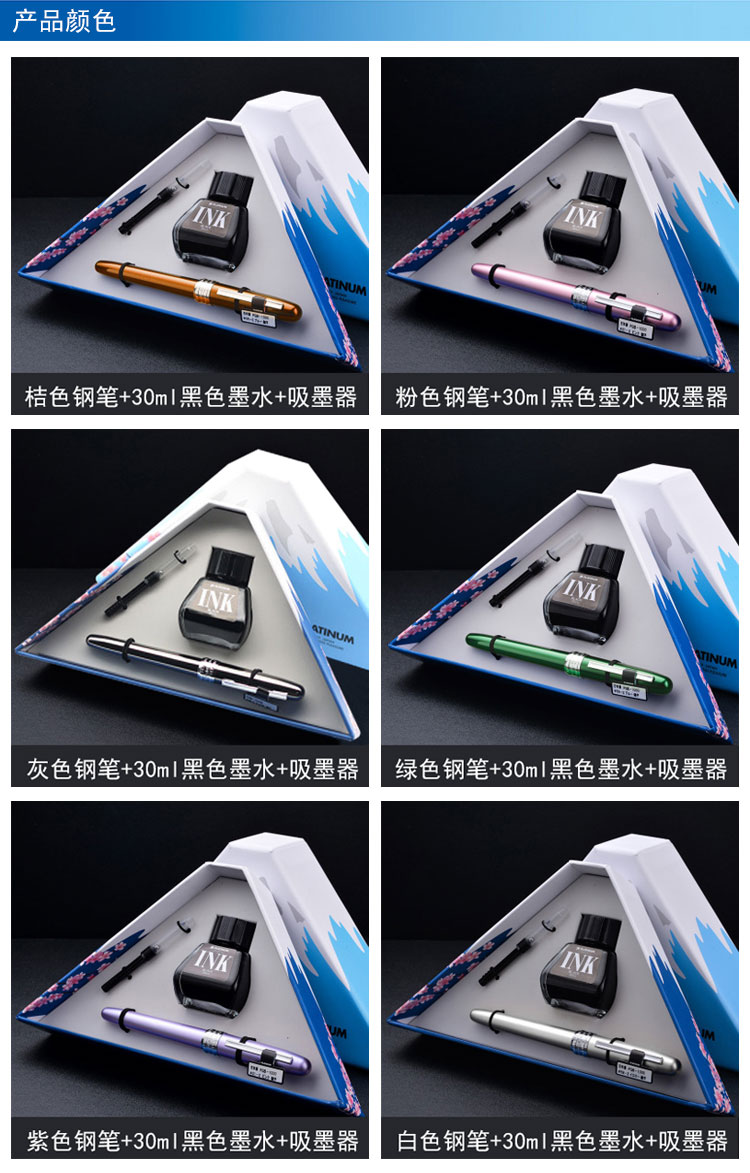 白金 PGB-1000B 富士山彩色鋁合金鋼筆套裝 0.38mm 銀色