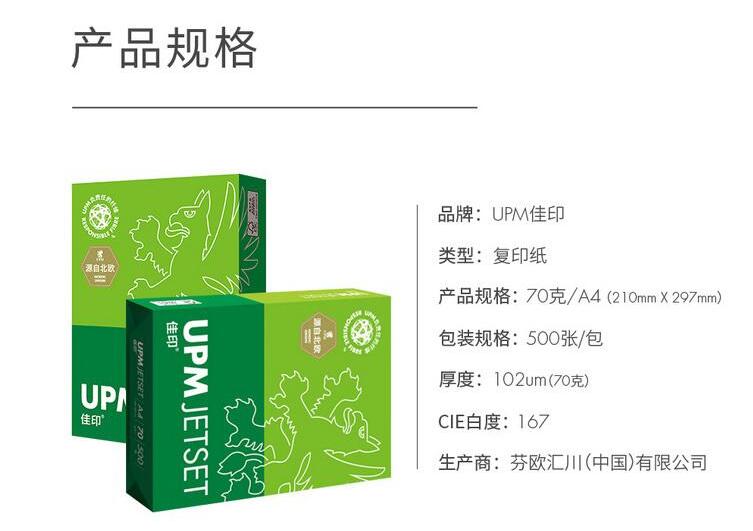 UPM佳印 70g 復印紙 A4 白色 500張/包 5包/箱