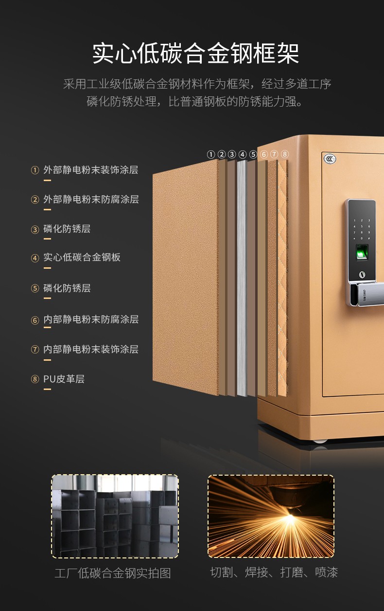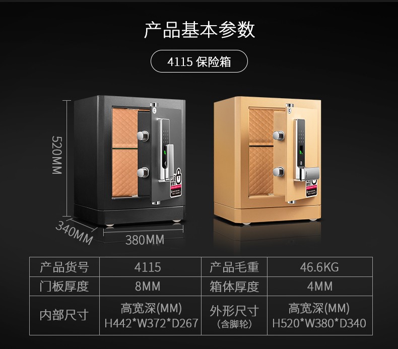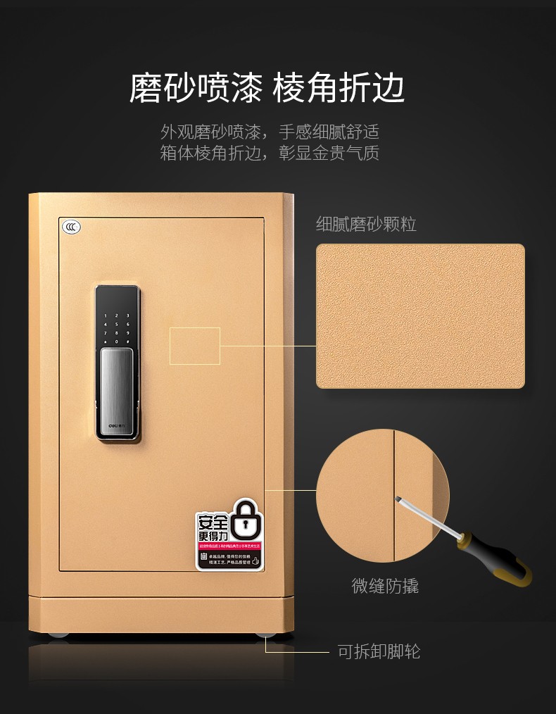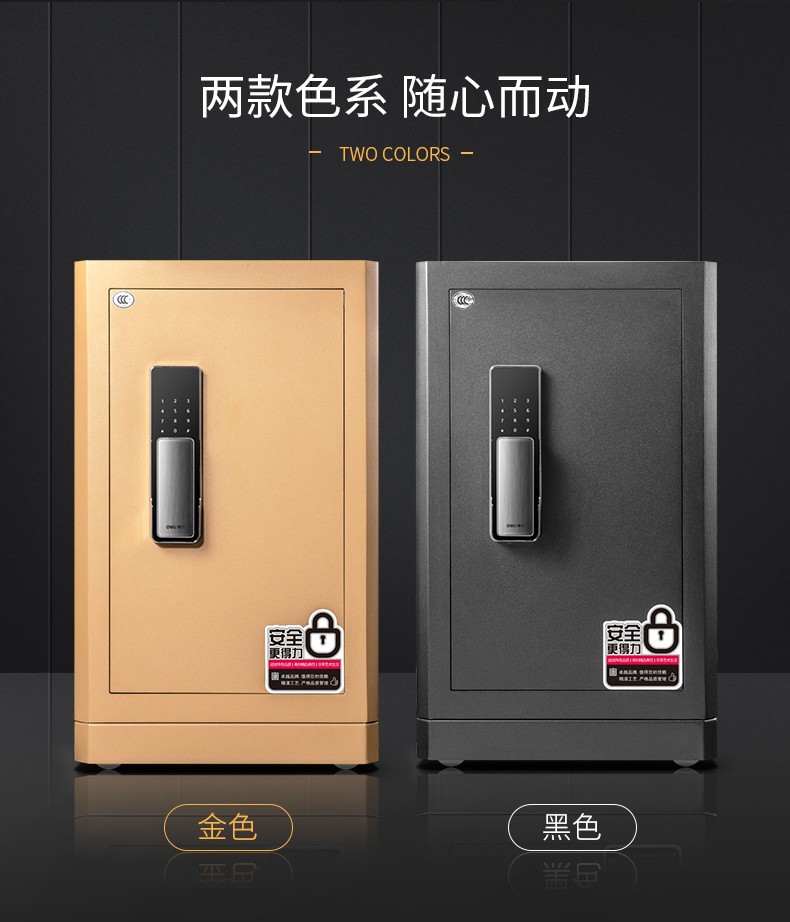 得力(deli)4115 指紋密碼雙重鎖控保險箱 高52cm 金色