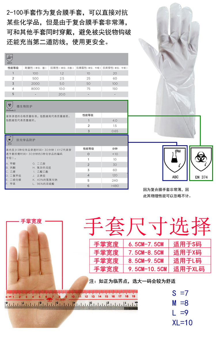 安思爾 Ansell 2-100 復(fù)合膜防化手套 9碼 12副/打 6打/箱