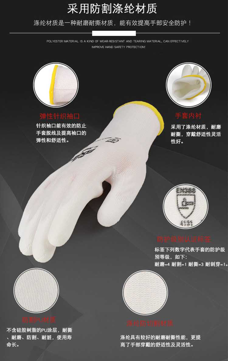 安思爾Ansell 48-125 滌綸PU涂層手套 8碼 白色 12副/打 12打/箱