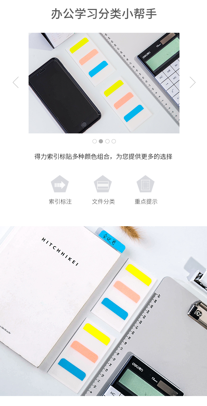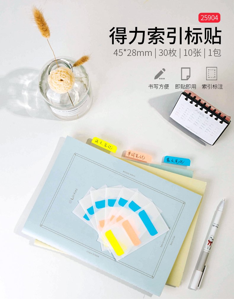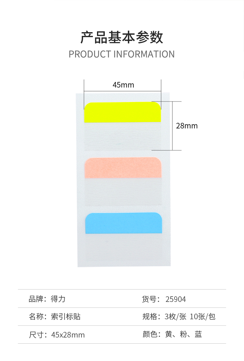 得力 25904 索引標(biāo)簽 28*45mm 混色 3枚/張 10張/包