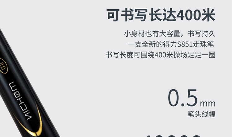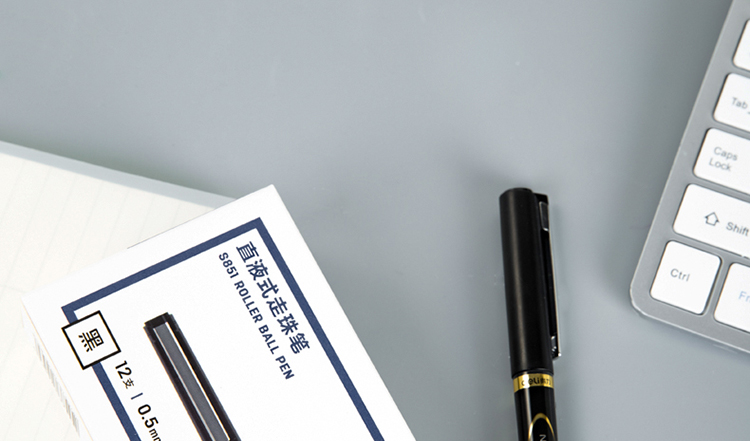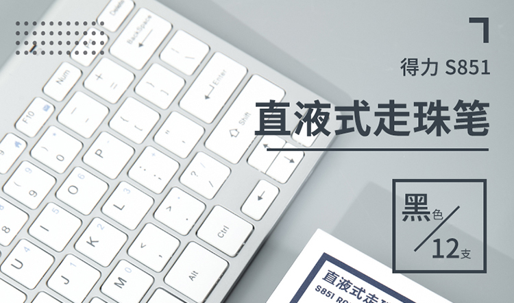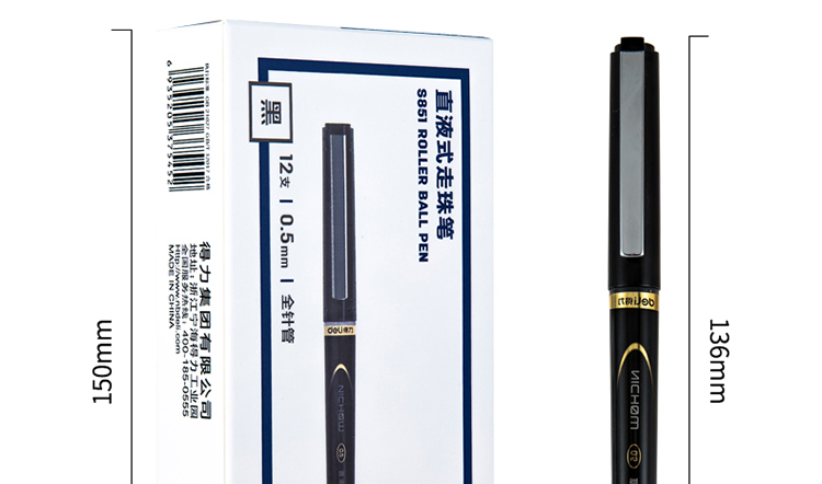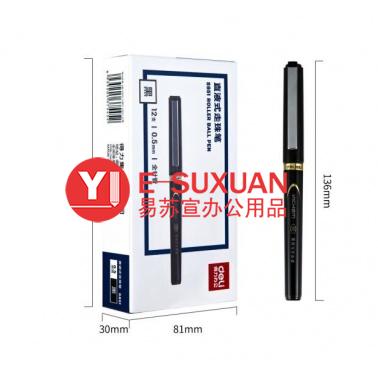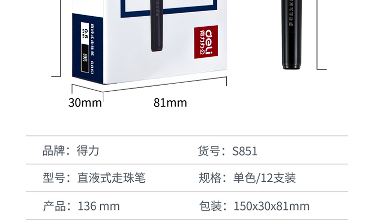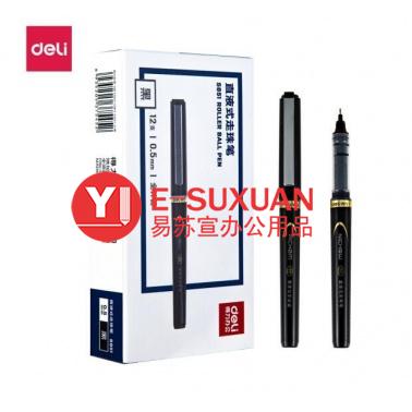 得力 S851 可換芯直液式走珠筆 0.5mm 黑色 12支/盒