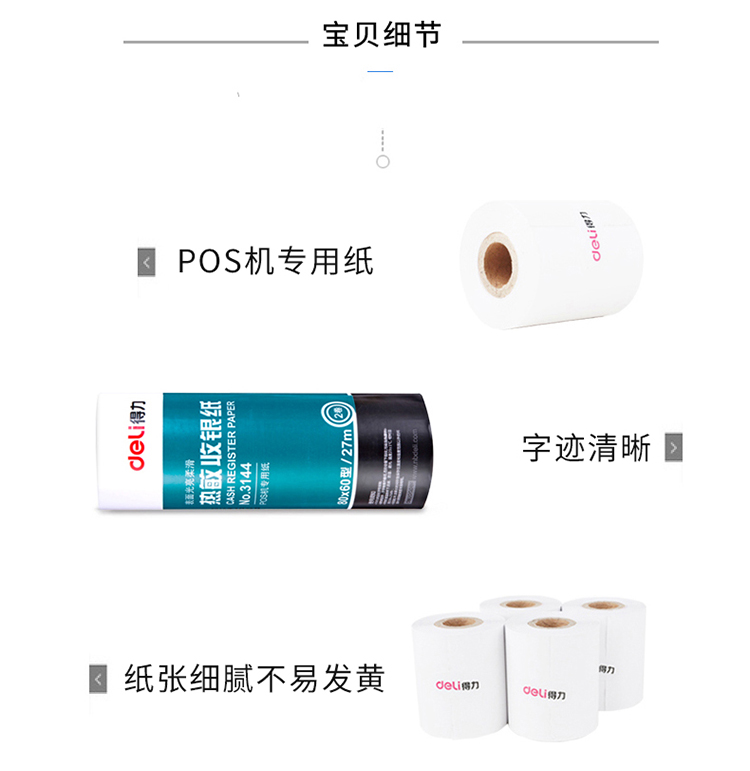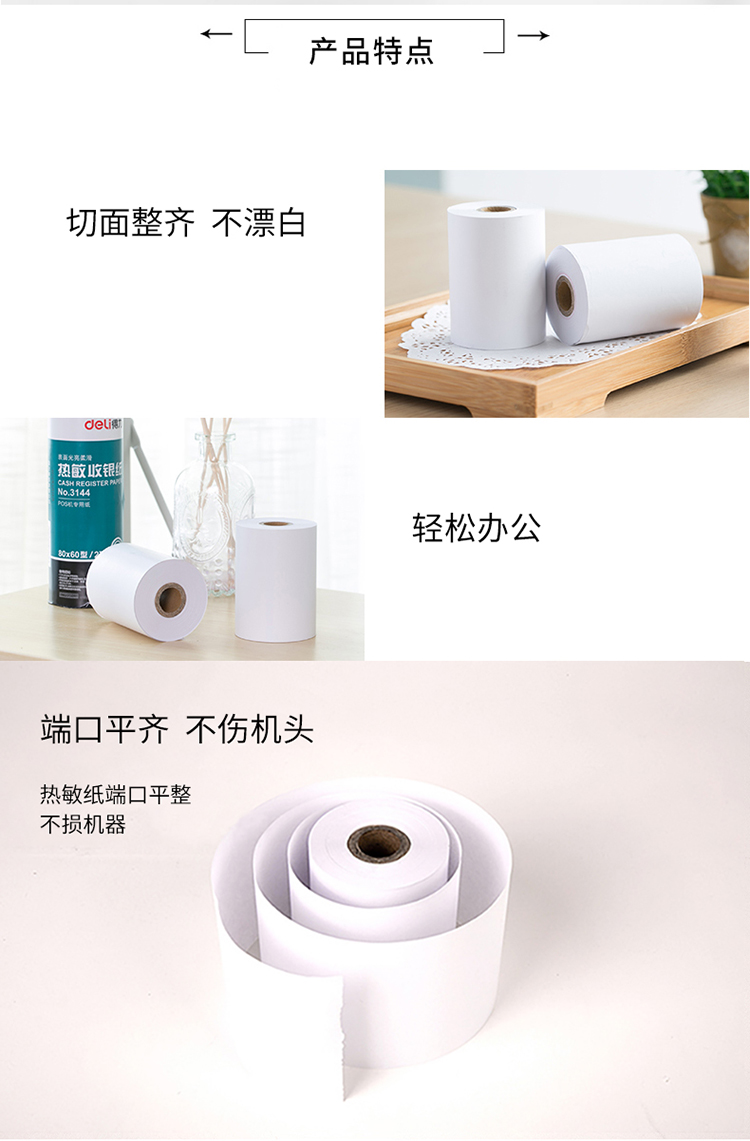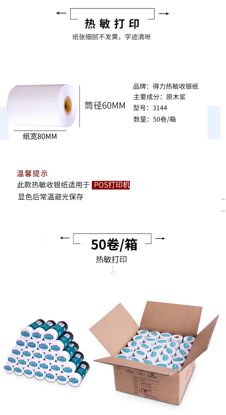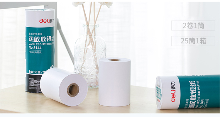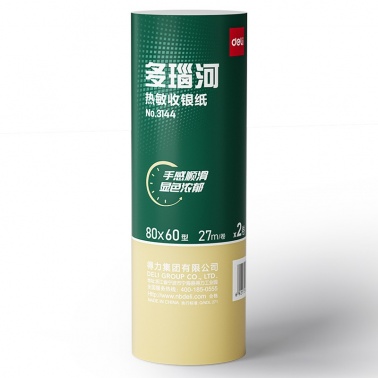 得力 3144 多瑙河熱敏收銀紙 80mm*60mm 白色 2卷/筒