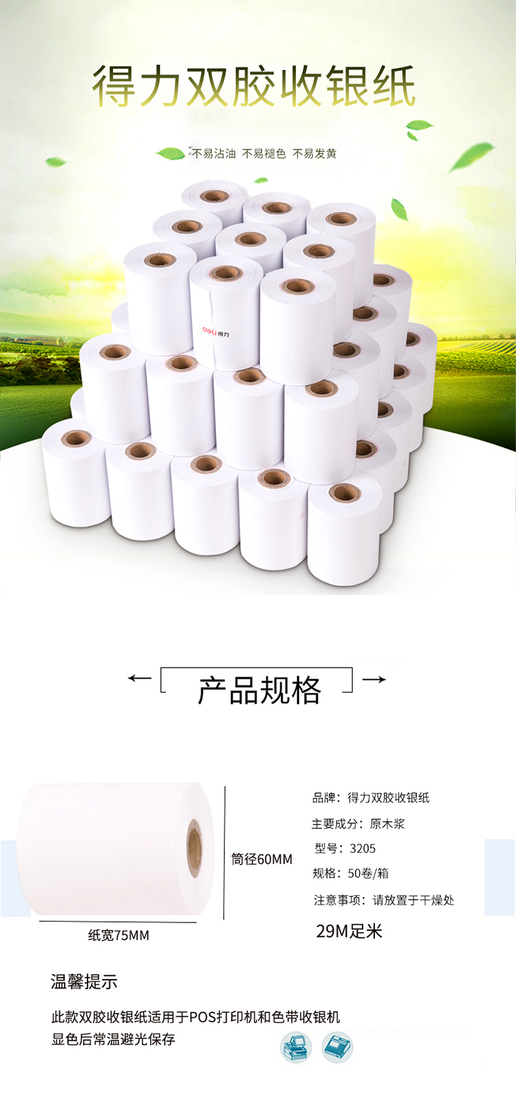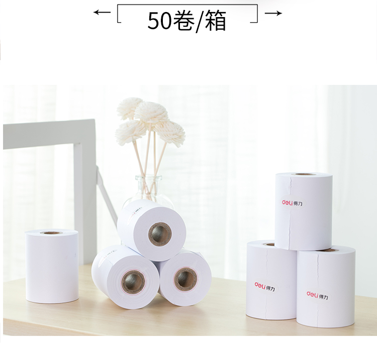得力 75mm*60mm 雙膠收銀紙 3205 白色 50卷/箱
