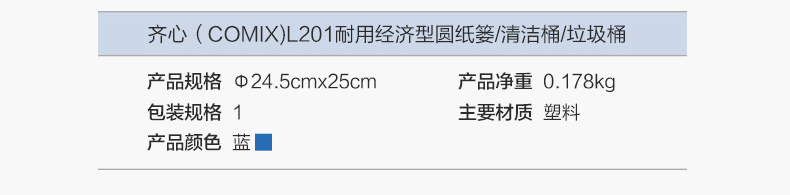 齊心 L201 圓形經(jīng)濟型紙簍 直徑24.5cm 藍色