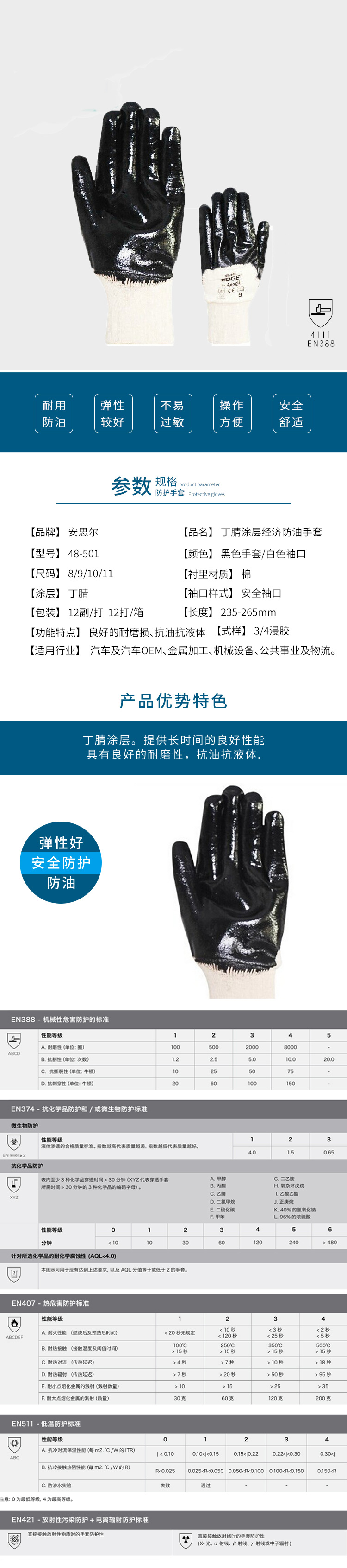 安思爾/ANSELL 48-501 丁腈橡膠涂層套 9碼 12付/打