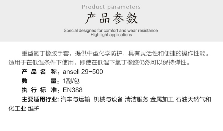 安思爾/Ansell 29-500 氯丁橡膠防化手套 9碼 12副/打