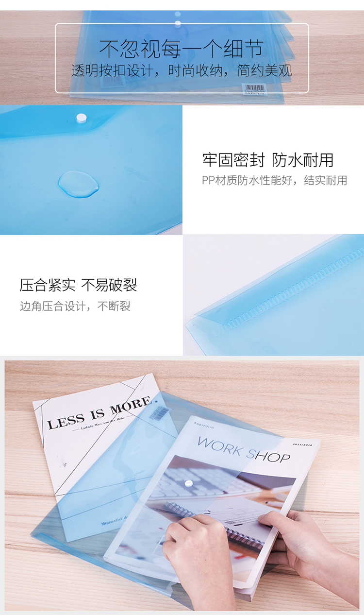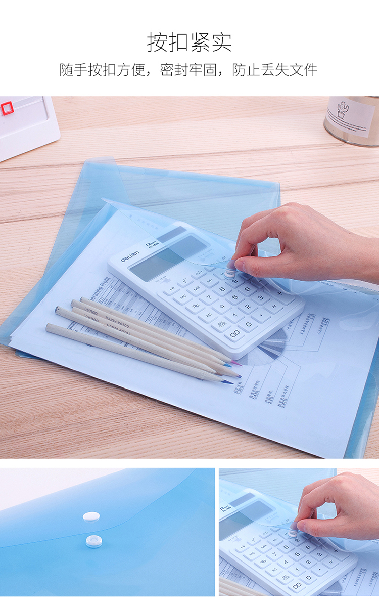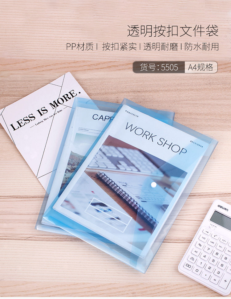 得力 5505 按扣式文件袋 A4 透明 10個(gè)/包