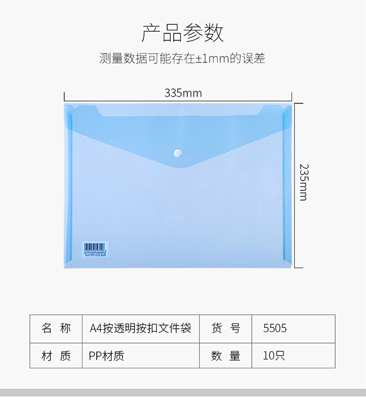 得力 5505 按扣式文件袋 A4 藍色 10個/包
