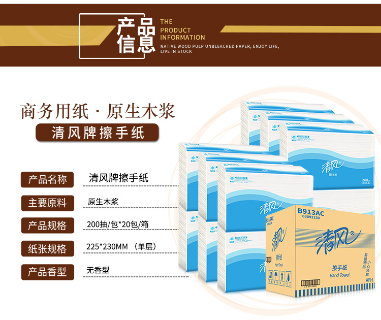 清風 B913AC 抽取式擦手紙 200抽/包 20包/箱