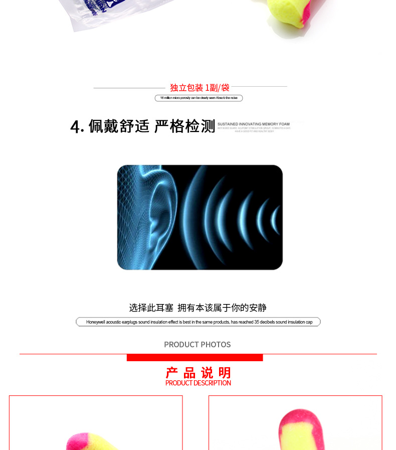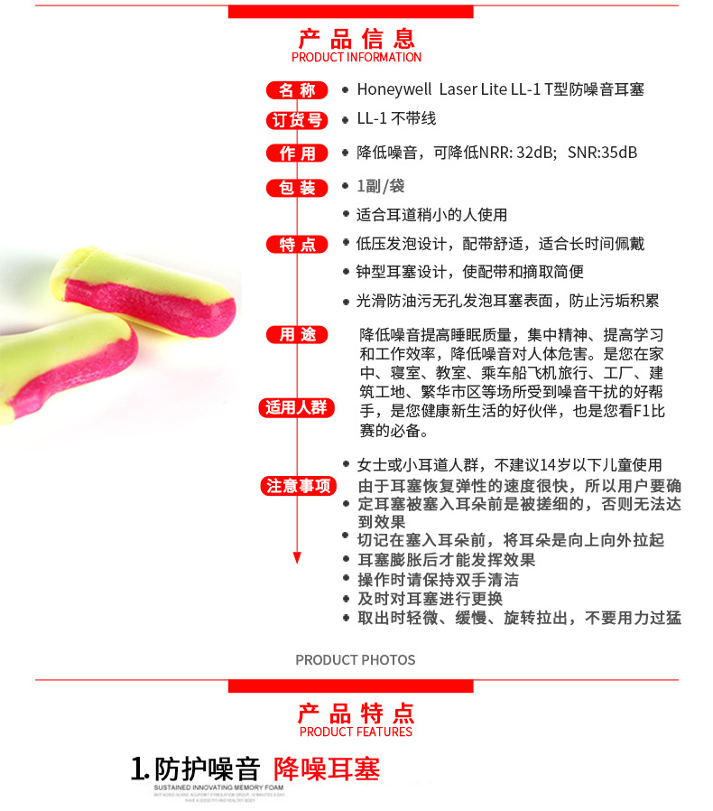 霍尼韋爾 LL-1 易識別T型耳塞 200副/盒