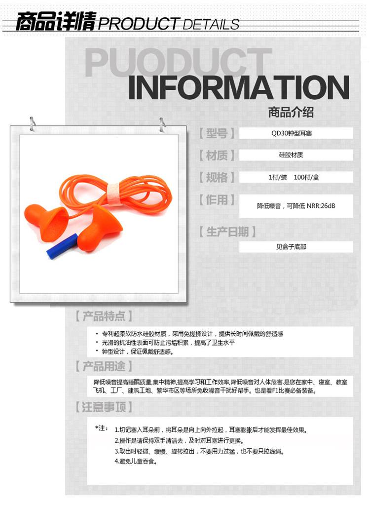 霍尼韋爾 QD30 鐘型帶線耳塞 100副/盒
