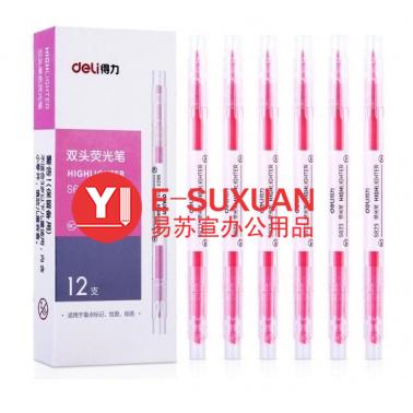 得力 S623 雙頭熒光筆 紅色 12支/盒