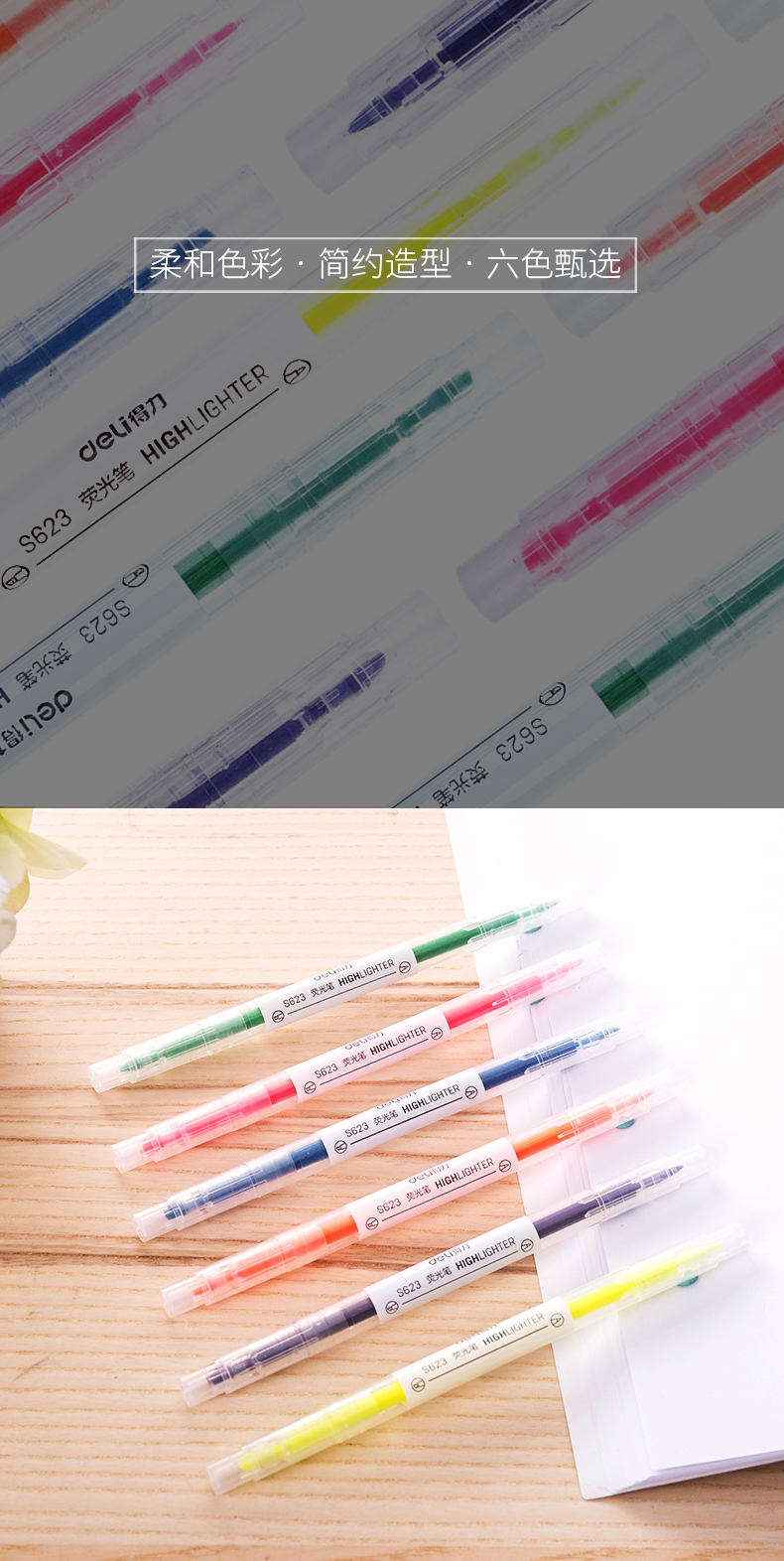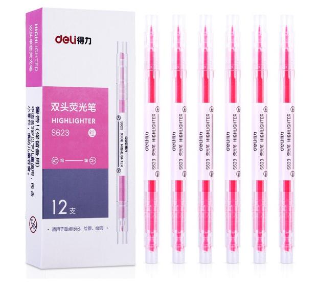 得力 S623 雙頭熒光筆 黃色 12支/盒