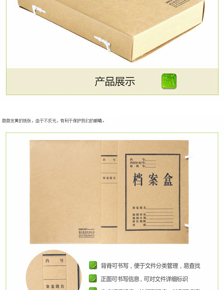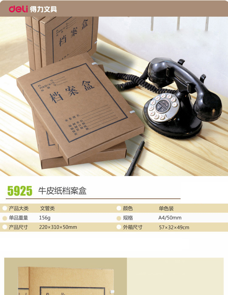 得力 5925 純漿牛皮紙檔案盒 50mm 黃色 10個(gè)/包