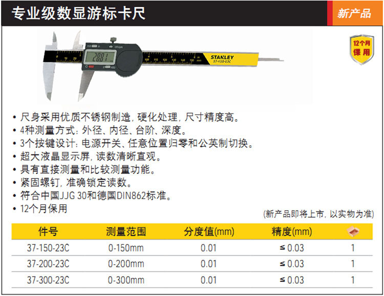 史丹利 37-200-23C 專業(yè)級數(shù)顯游標卡尺 0-200mm