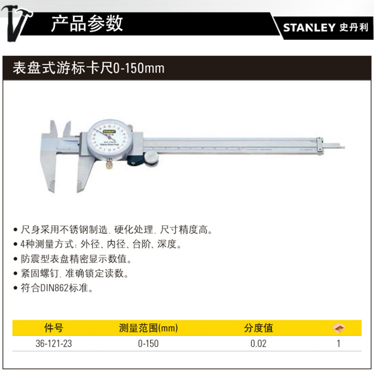 史丹利 36-121-23 表盤式游標(biāo)卡尺 0-150mm