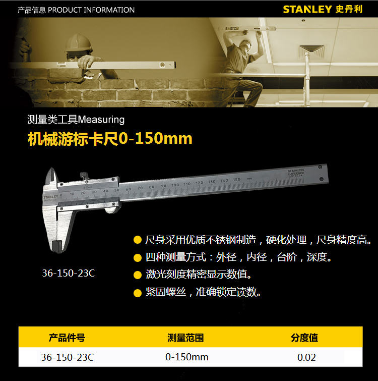 史丹利 36-150-23C 機(jī)械游標(biāo)卡尺 0-150mm