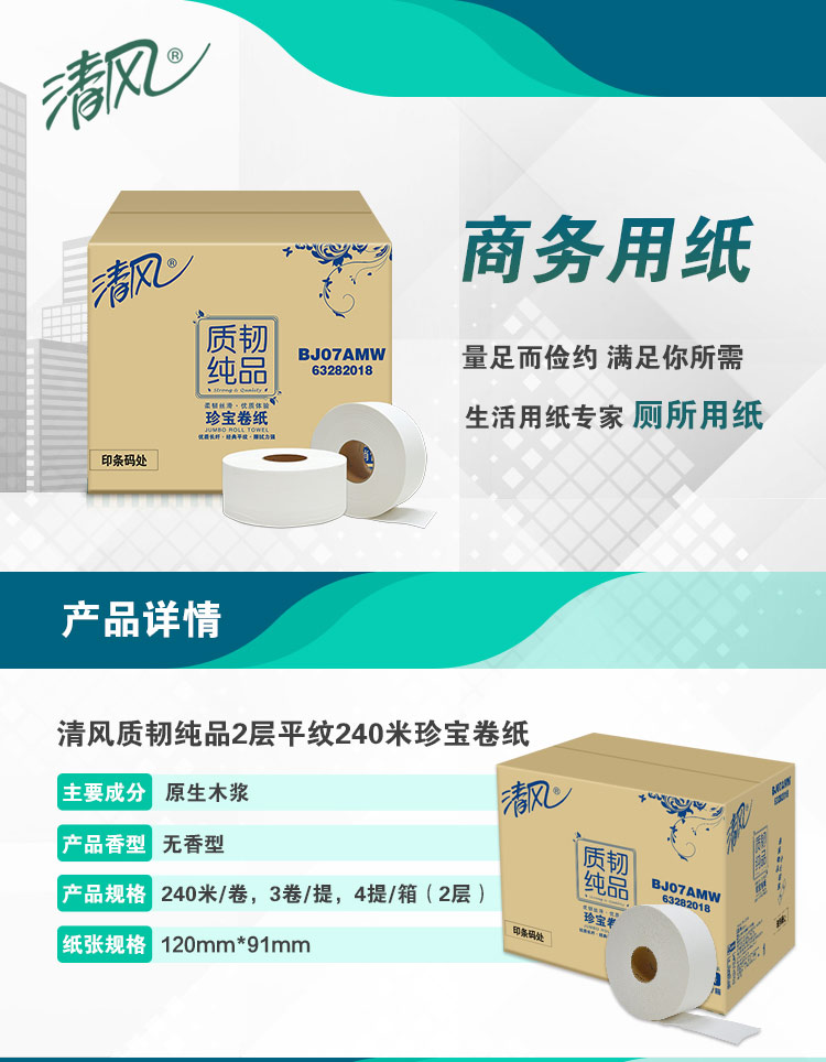 清風(fēng) BJ07AMW 珍寶大卷紙 240米 雙層 3卷/提 4提/箱