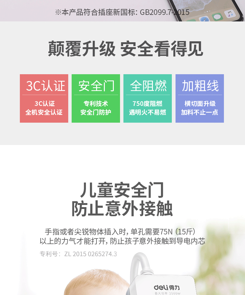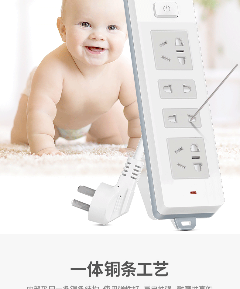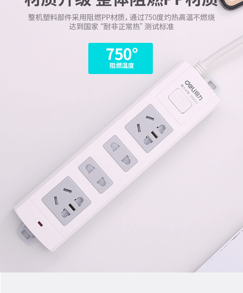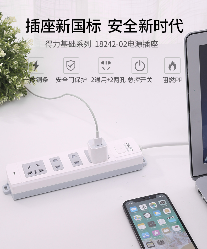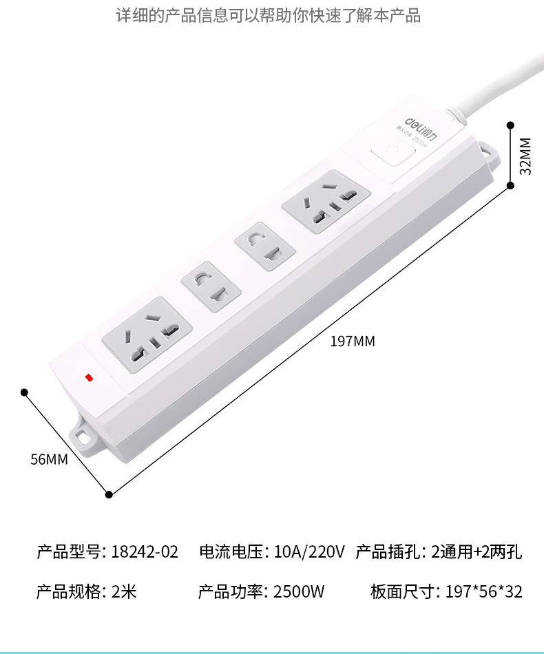 得力18242-02 單控四聯(lián)拖線板插座 2米 白色