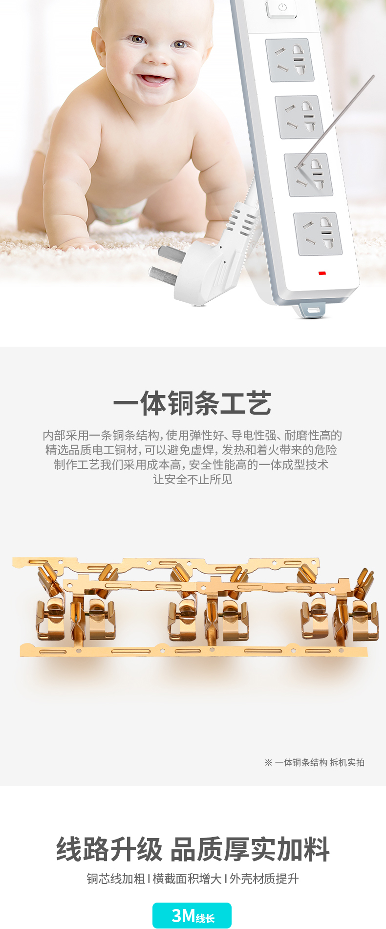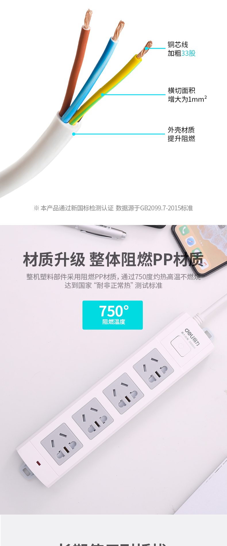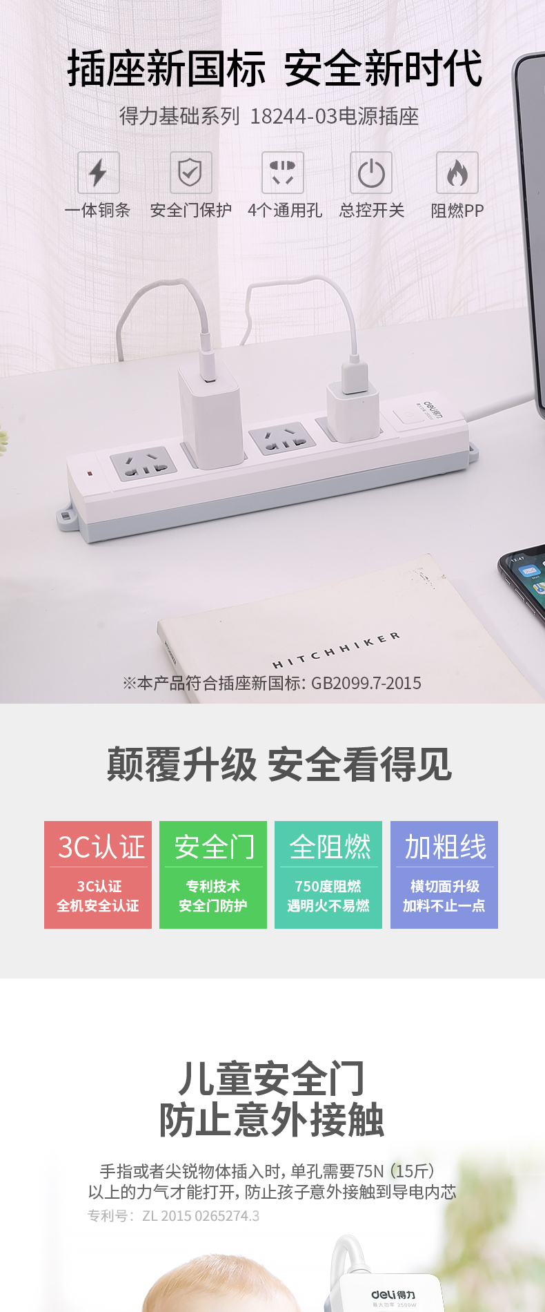 得力18244-03 單控四聯(lián)拖線板插座 3米 白色