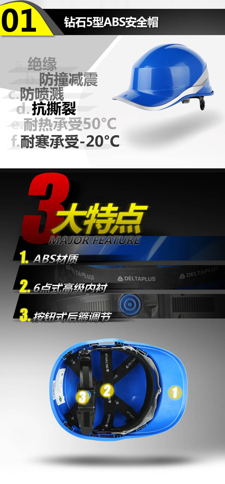 代爾塔/DELTAPLUS 102018 安全帽 建筑工地工程絕緣安全帽 ABS材質(zhì) 紅色