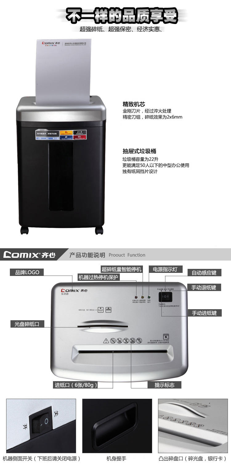 齊心 S358 防卡紙碎紙機(jī) 22L 黑色 5級(jí)保密