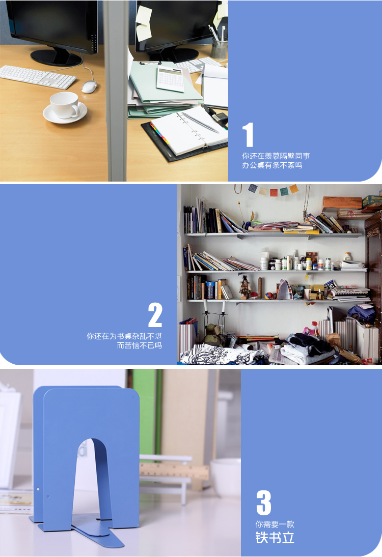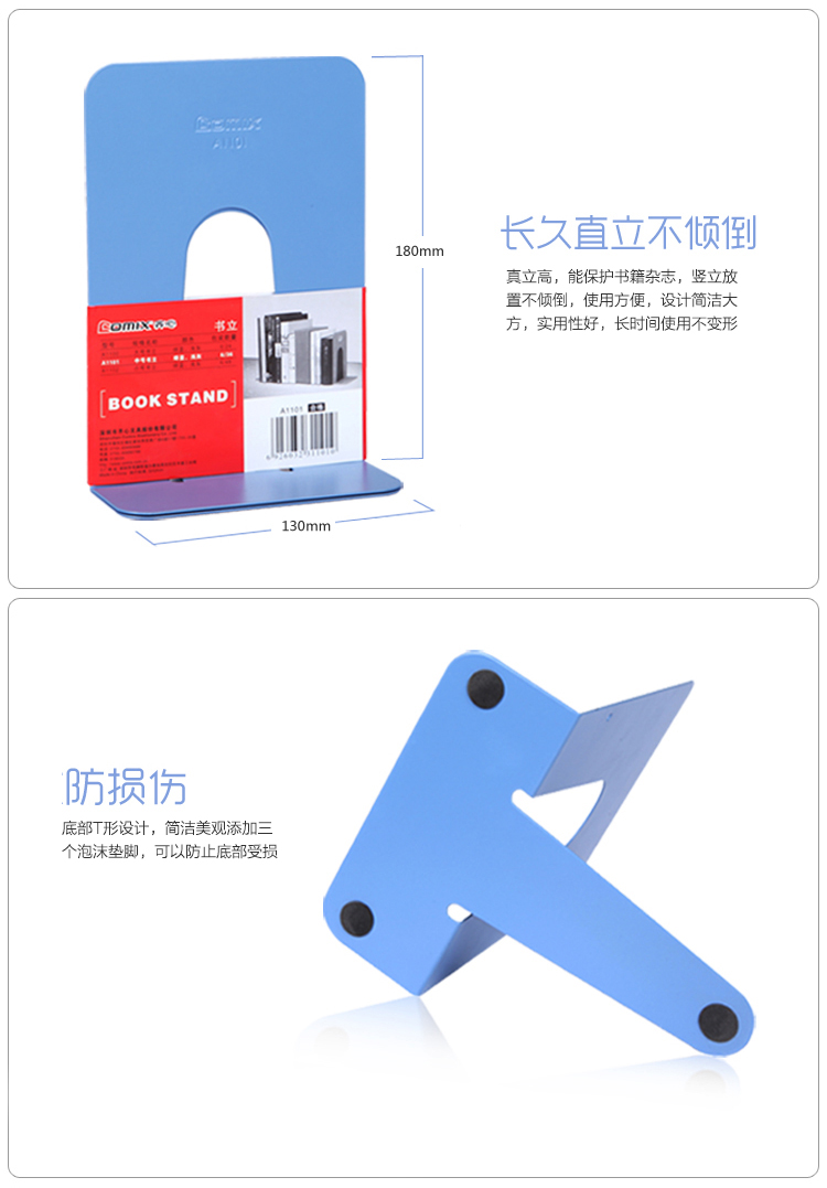 齊心 A1101 中號鐵書立 7寸 藍(lán)色