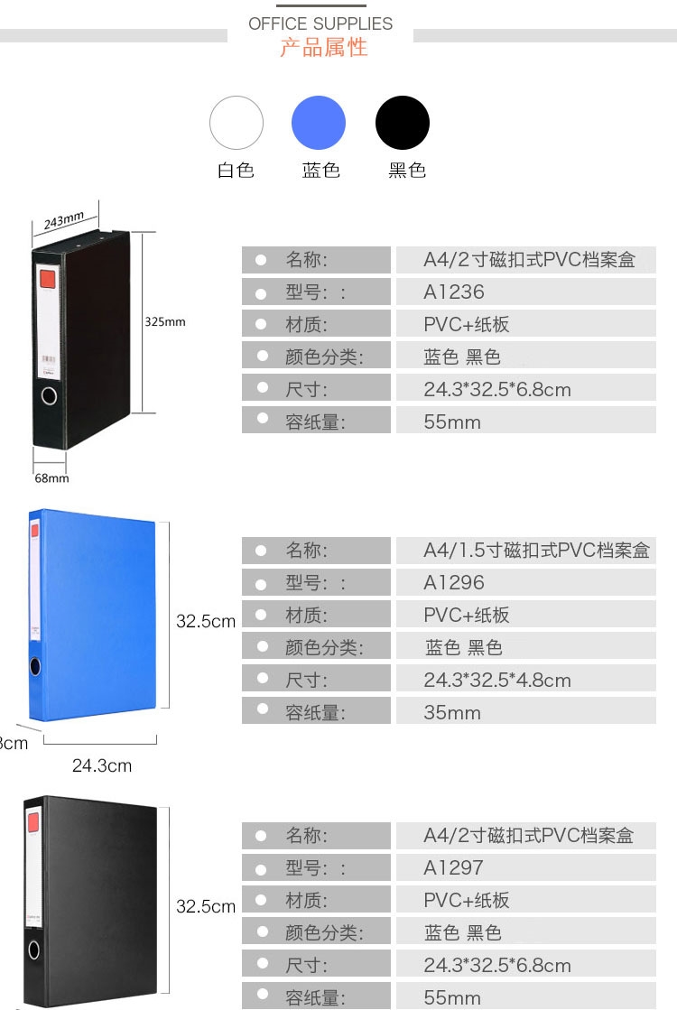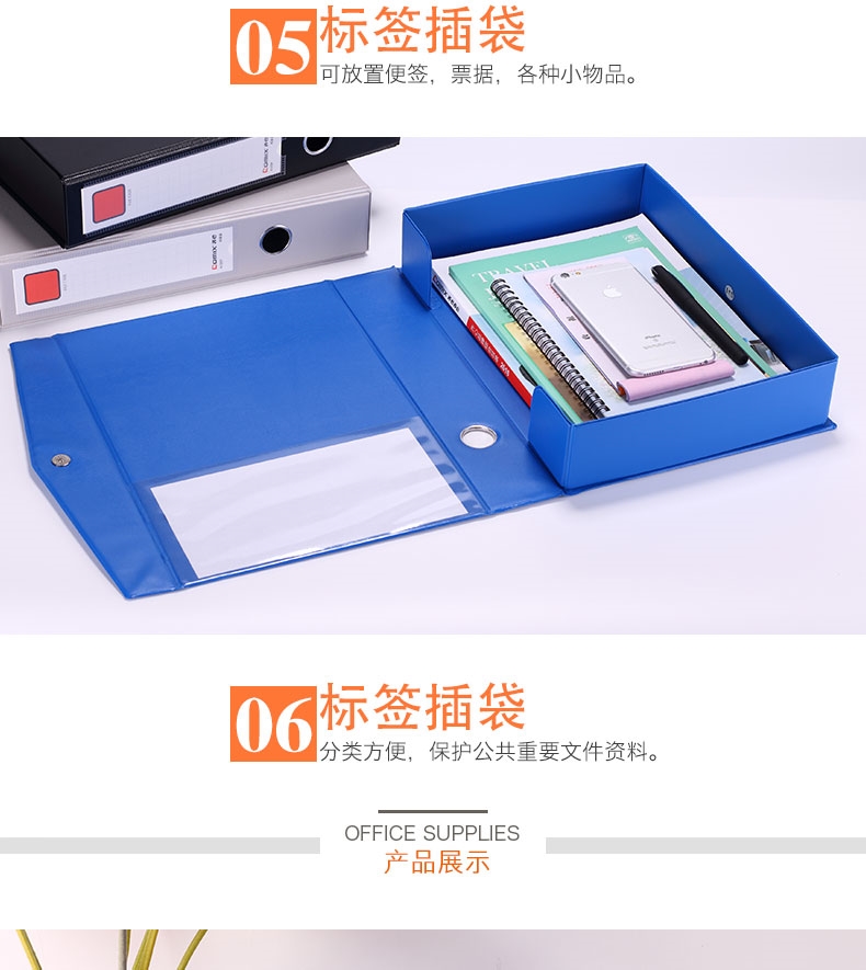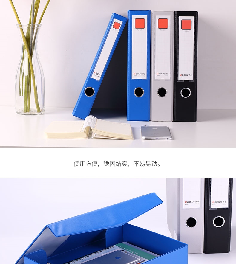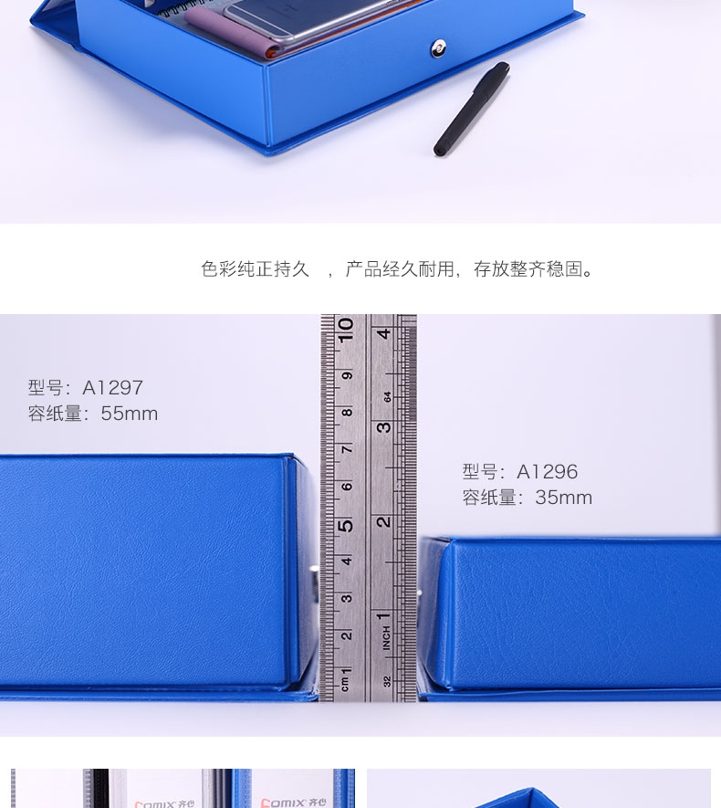 齊心(Comix) A1296 PVC磁扣式檔案盒 A4 藍(lán)色 35mm