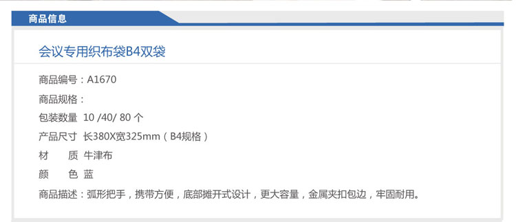 齊心(COMIX)A1670 會議專用織布袋 B4 黑色
