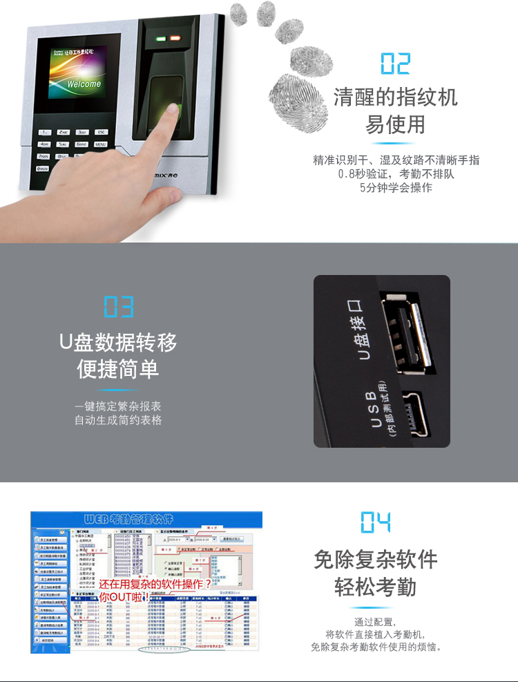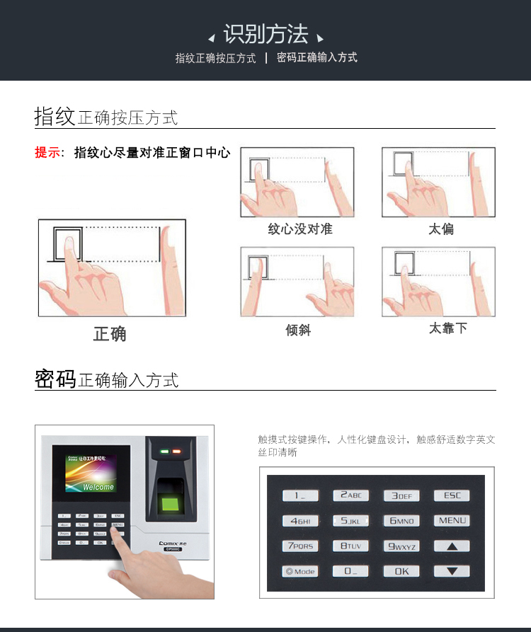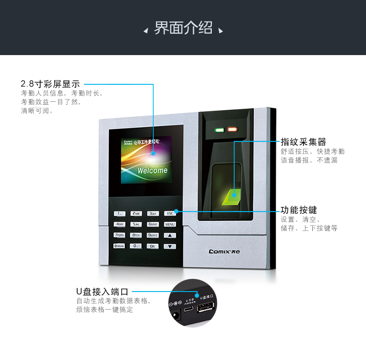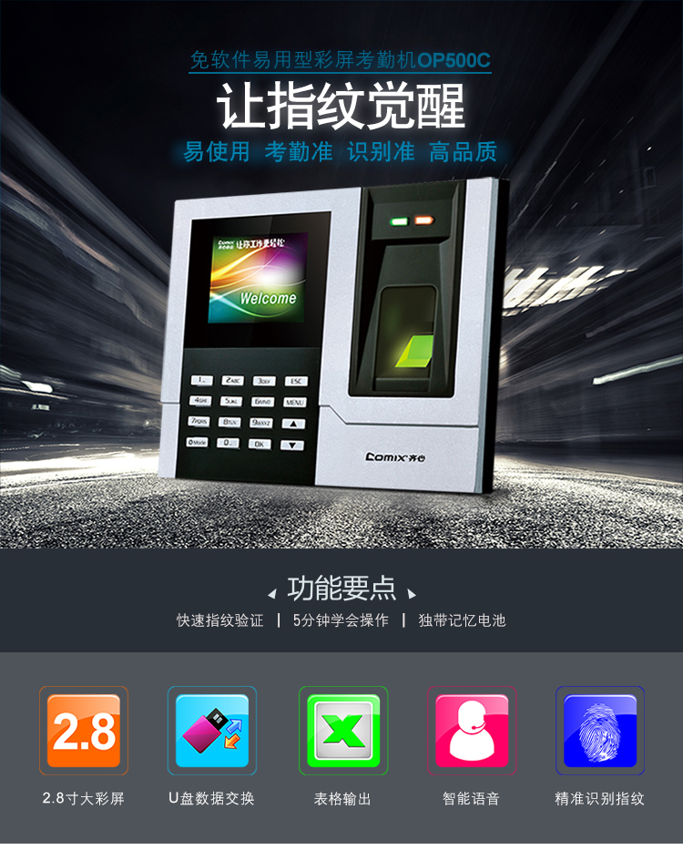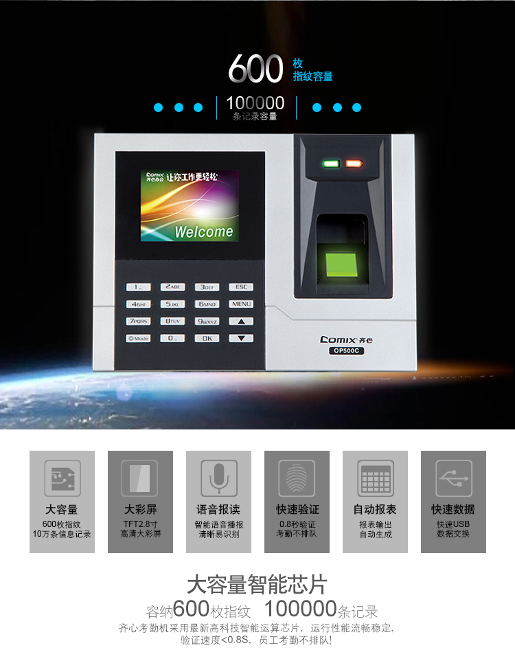 齊心(Comix) OP500C 彩屏指紋考勤機(jī)