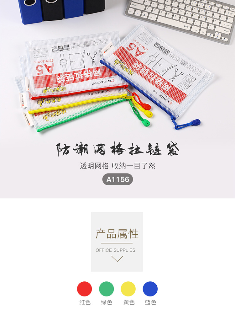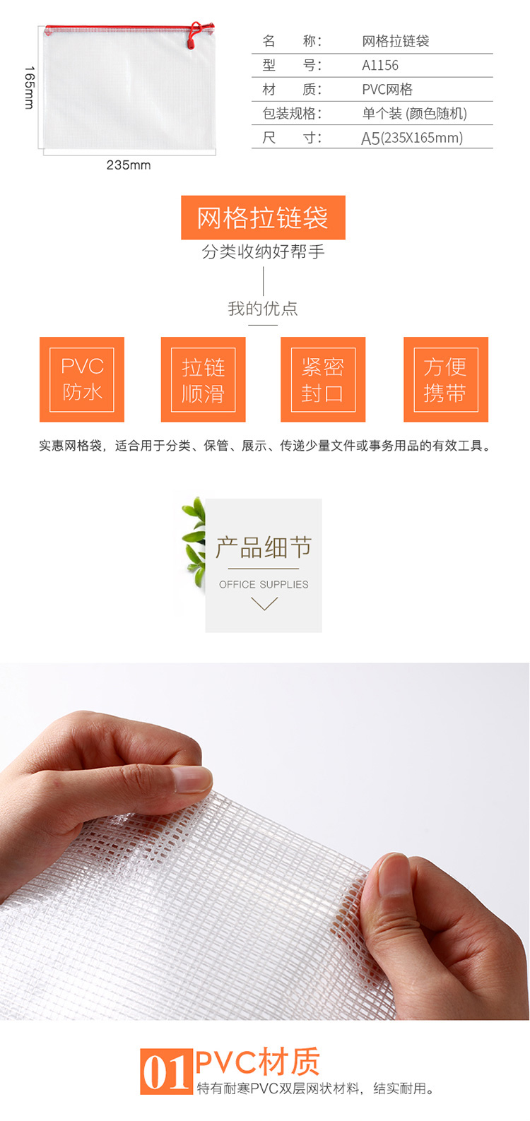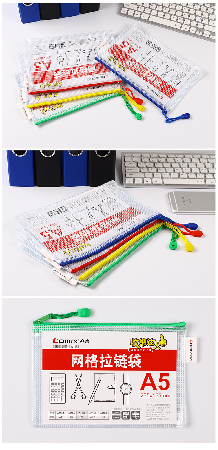 齊心(Comix) A1156 PVC防潮網(wǎng)格拉鏈袋 A5