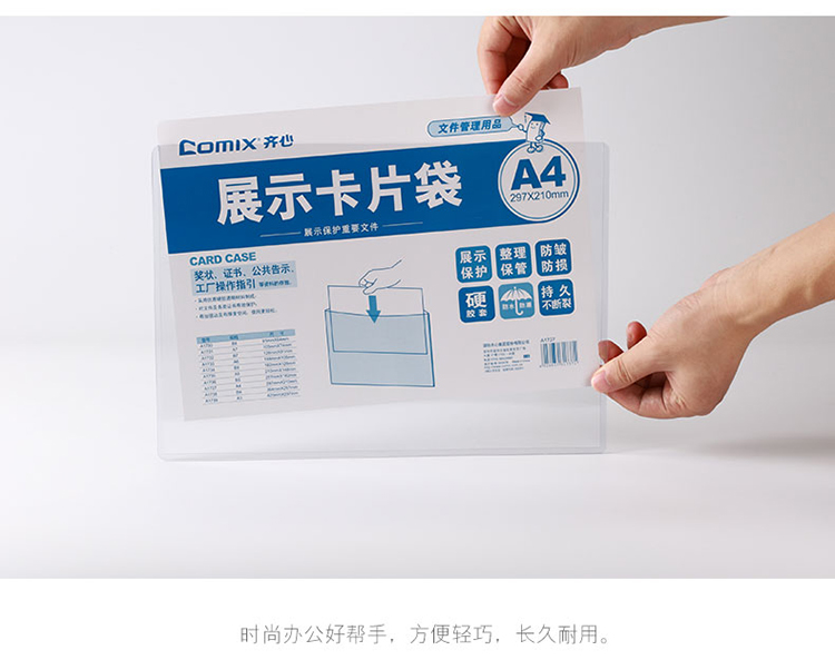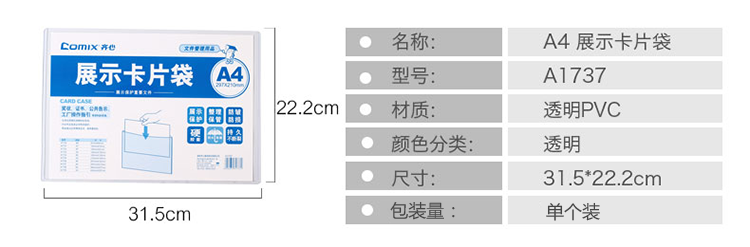 齊心(Comix) A1737 易展示卡片袋 A4 硬質 20個/盒