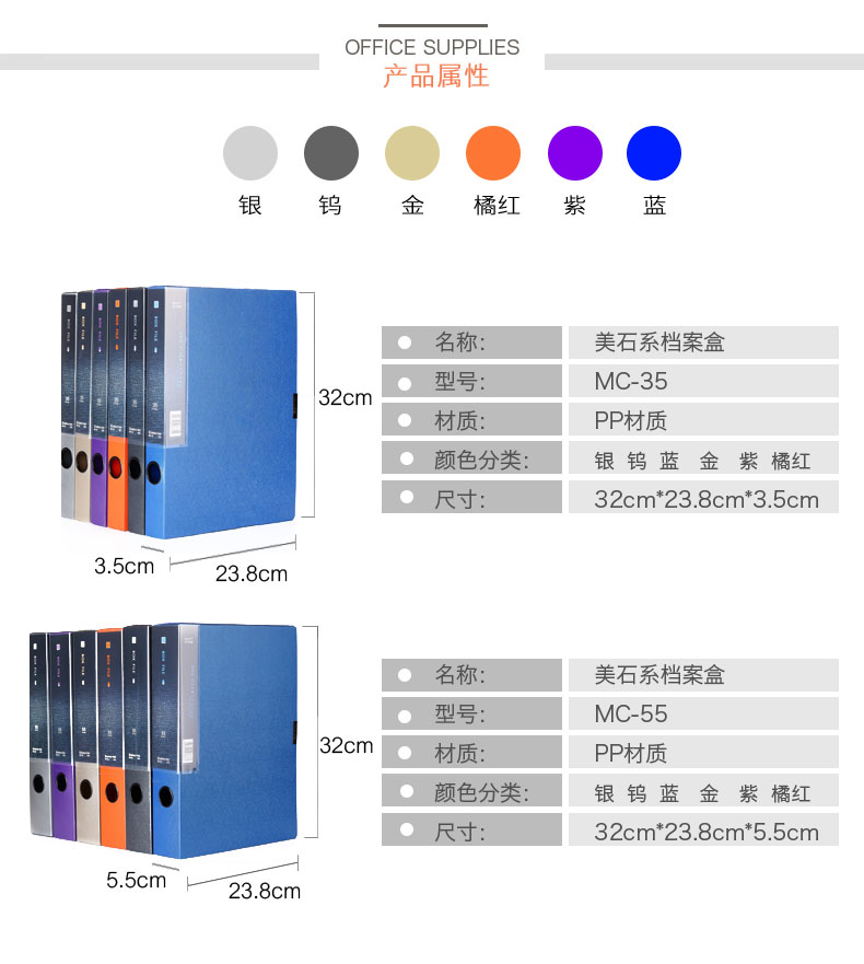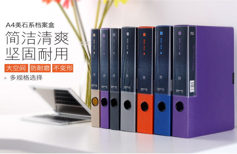 齊心(Comix) MC-55 美石系列PP檔案盒 A4 鈦藍色 55mm
