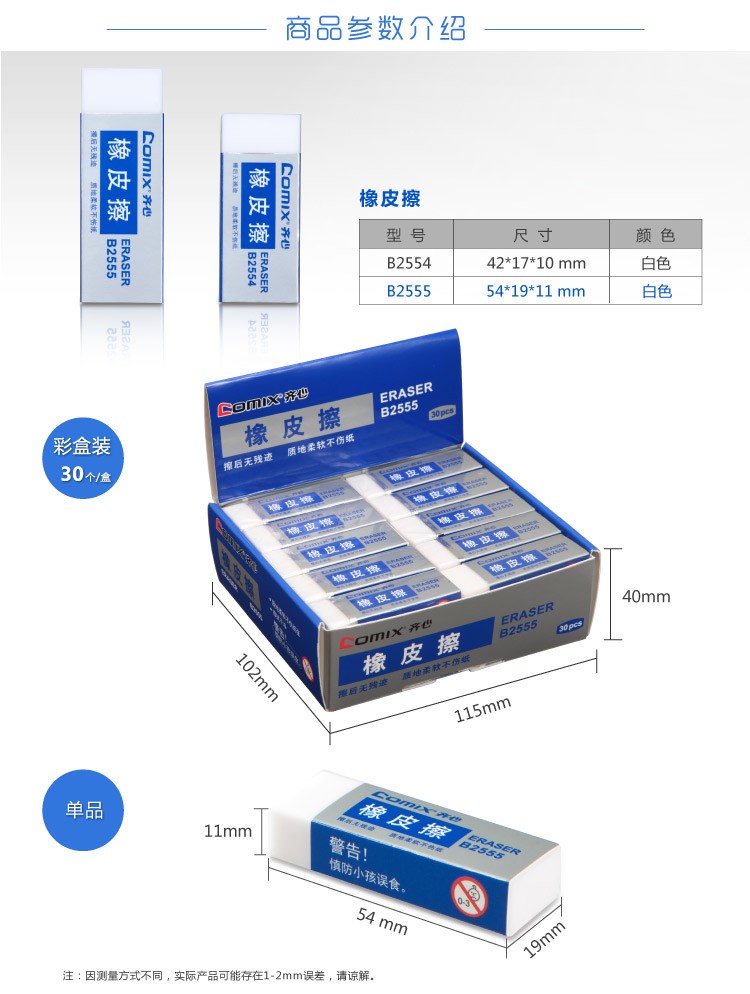 齊心(COMIX) B2555 橡皮擦 白色
