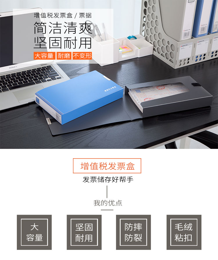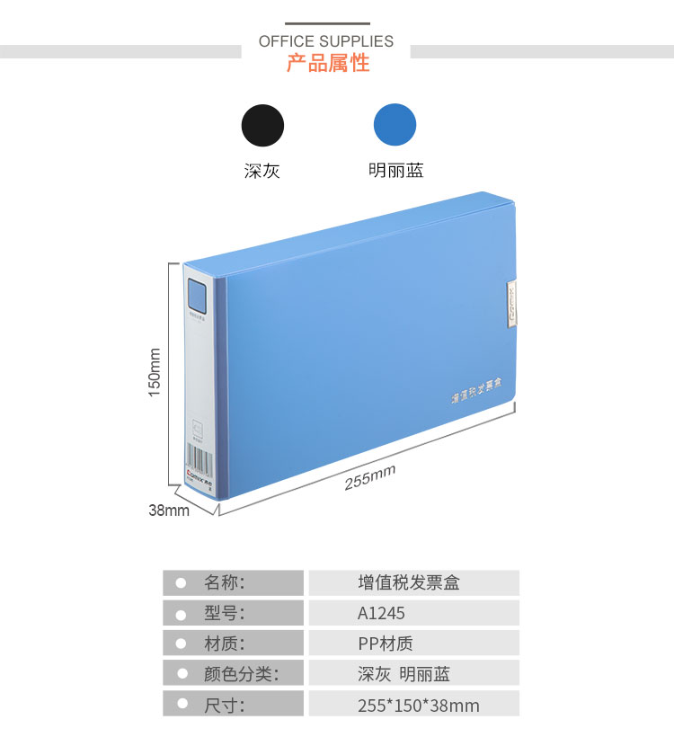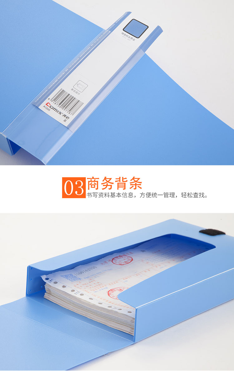 齊心(COMIX) A1245 增值稅發(fā)票盒 255*150*38mm 藍(lán)色