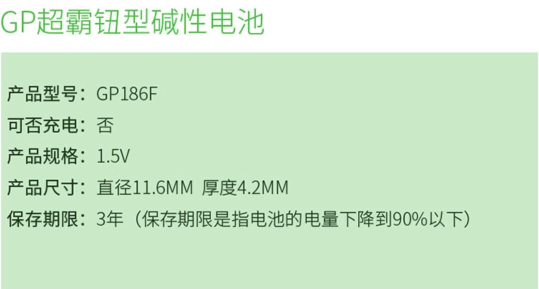 超霸 GP186F-LY 紐扣電池LR43 1.5V