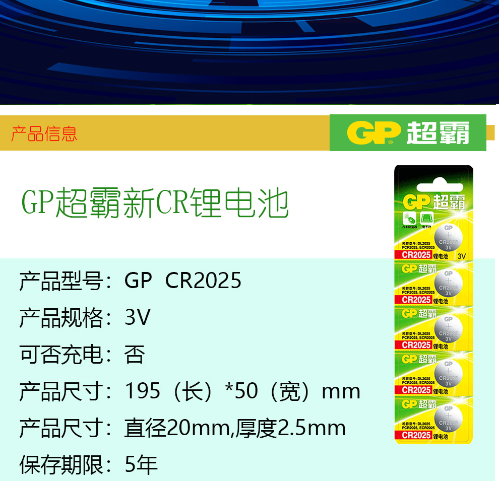 超霸(GP) CR2025 紐扣電池 3v 單粒裝