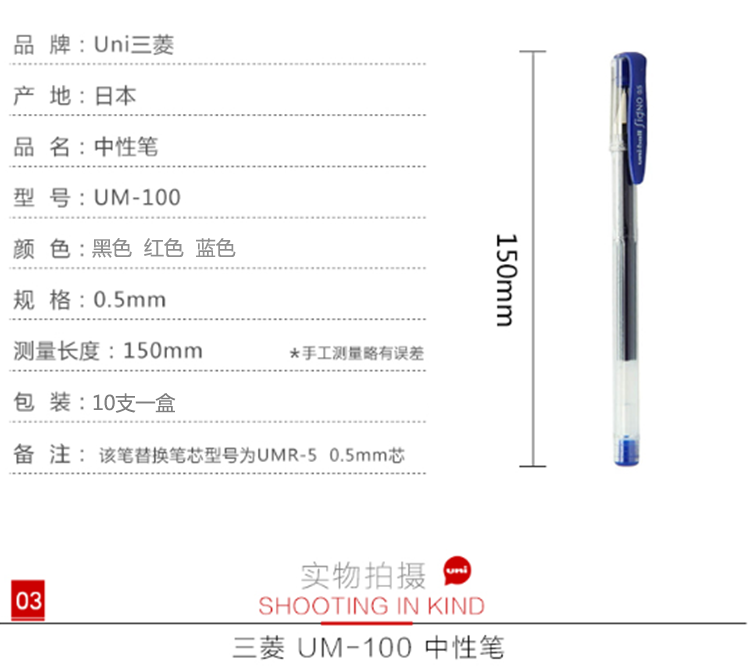 三菱 0.5雙珠水筆/啫哩筆UM-100(UMR-5,紅色,10支/盒)