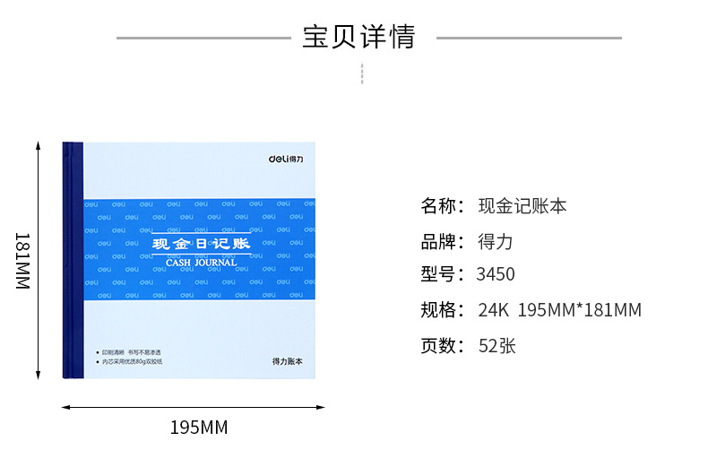 得力 3450 現(xiàn)金日記賬 24K 藍(lán)色 100頁