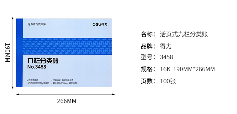 得力(Deli) 3458 活頁式九欄分類賬 16K 藍(lán)色 100頁
