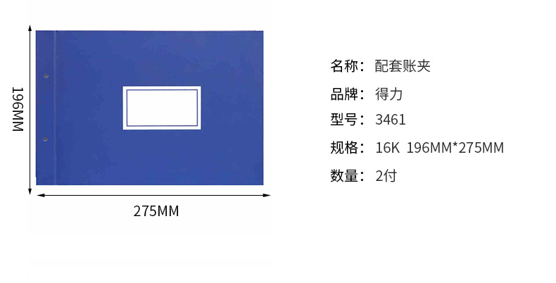 得力(Deli) 3461 賬夾 16K 藍色 2片/付