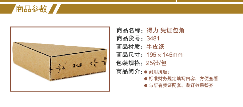 得力(Deli) 3481 憑證包角 195*145mm 棕黃 25張/包