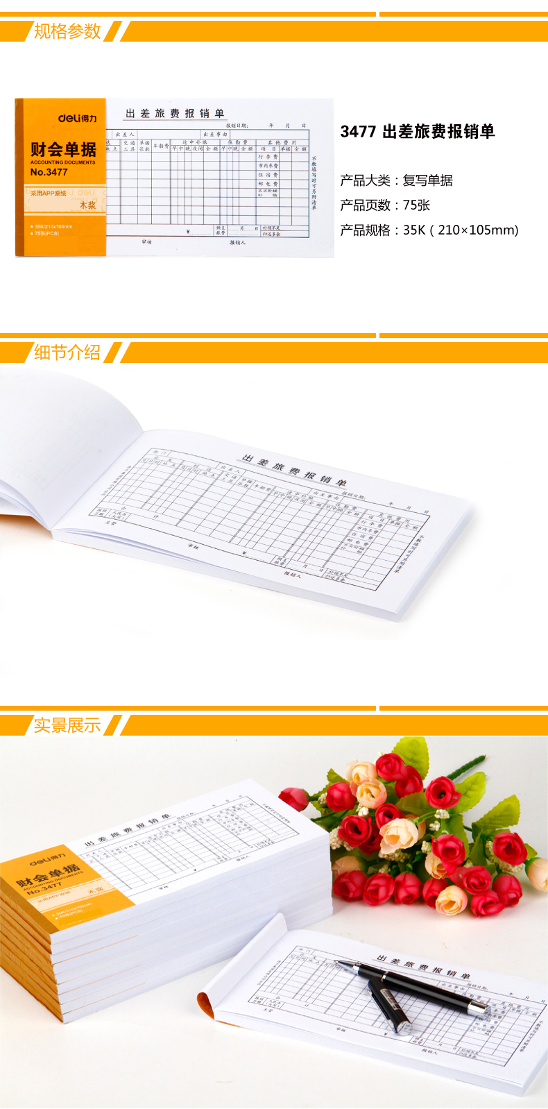 得力(Deli) 3477 出差旅費(fèi)報(bào)銷(xiāo)單 35K 白色 75頁(yè)