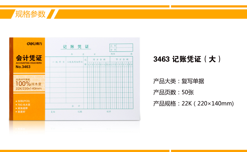 得力(deli)3463 記賬憑證 220*140mm 白色 75頁