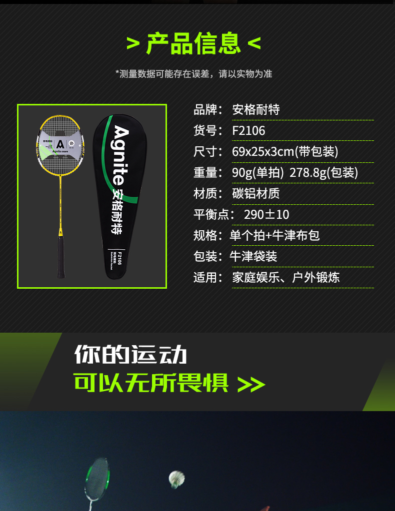 安格耐特(Agnite) F2106 羽毛球拍 黃色 單個(gè)裝