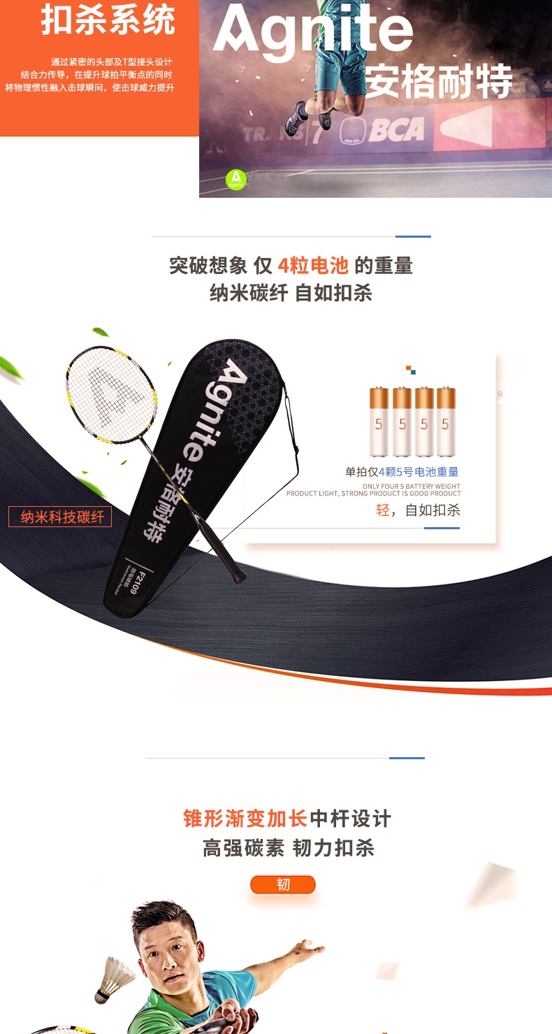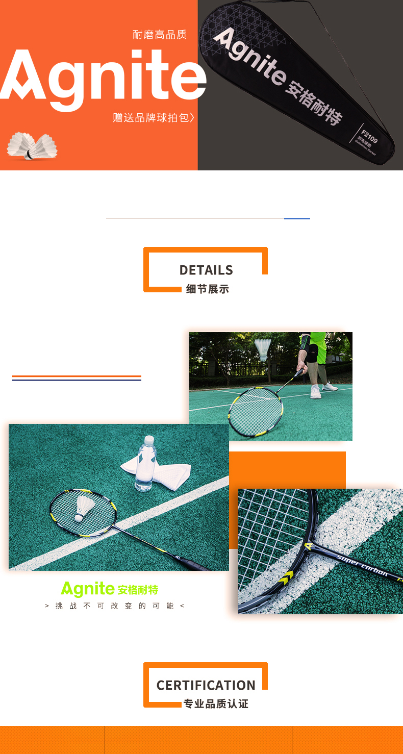 安格耐特(Agnite) F2109 全碳素超輕羽毛球拍 單拍裝