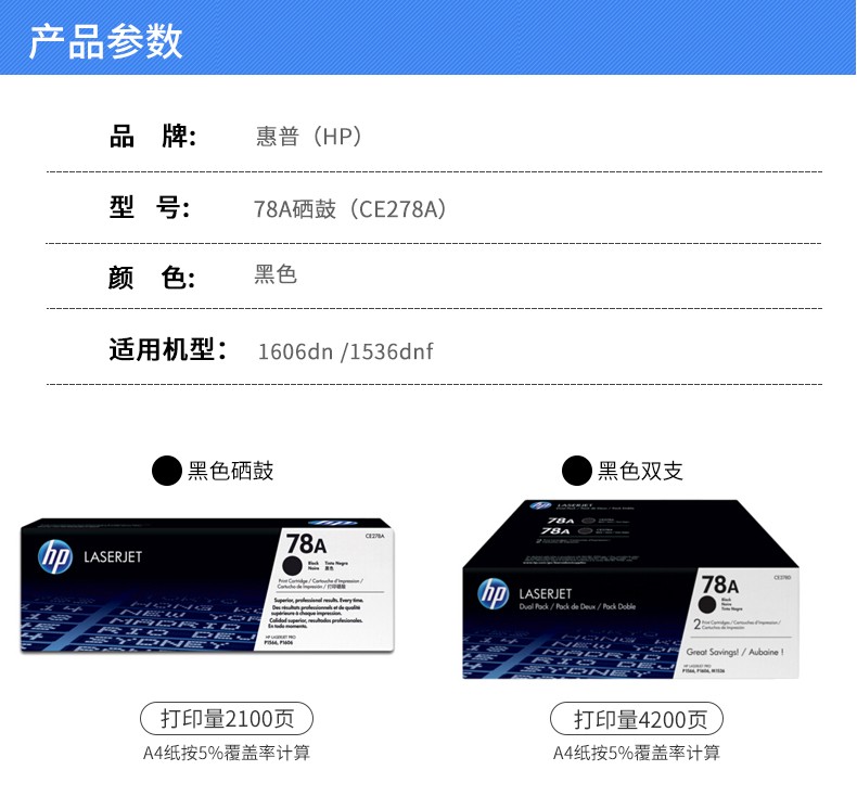 惠普(HP)CE278AF 原裝硒鼓雙支裝 78A 黑色 適用hp m1536dnf P1560 P1566 P1606